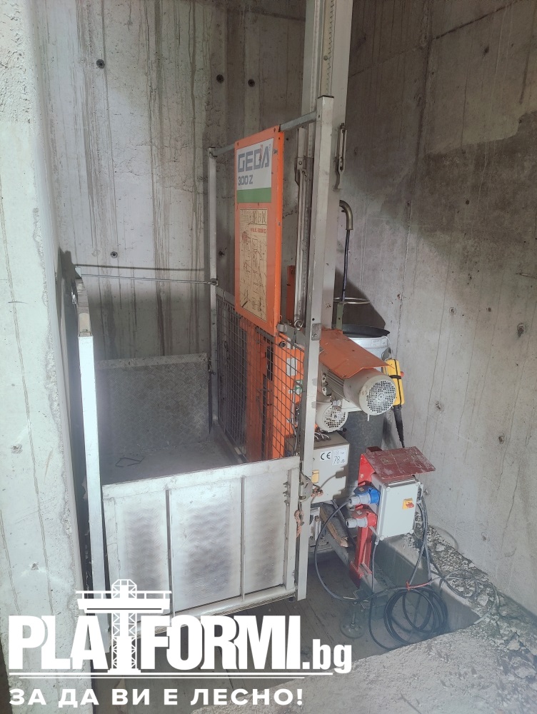 Строителен подемник Geda 300Z/ZG за асансьорна шахта. За строежа на нова компактна сграда в центъра на град София, доставихме хаспел Geda 300Z/ZG подходящ за наличната асансьорна шахта. Съобразихме избора на строителния подемник Geda 300Z/ZG с размерите на наличната асансьорна шахта, както и с бъдещите проекти на възложителя. Изборът на правилния строителен подемник – товароподемност, размер на работния кош, външни габаритни размери, лесен за поддръжка е в основата на неговото използване дълги години. Закупуването на строителен подемник е инвестиция за години напред. Избора на правилния доставчик и технически данни е важна част от конфигурирането му. Един строителен обект е с продължителност от 6 мес. до 24мес. и строителния подемник е основното транспортно средство. Доставихме употребявания строителен подемник Geda 300Z/ZG напълно ревизиран и реновиран и с нови мачтови секции.